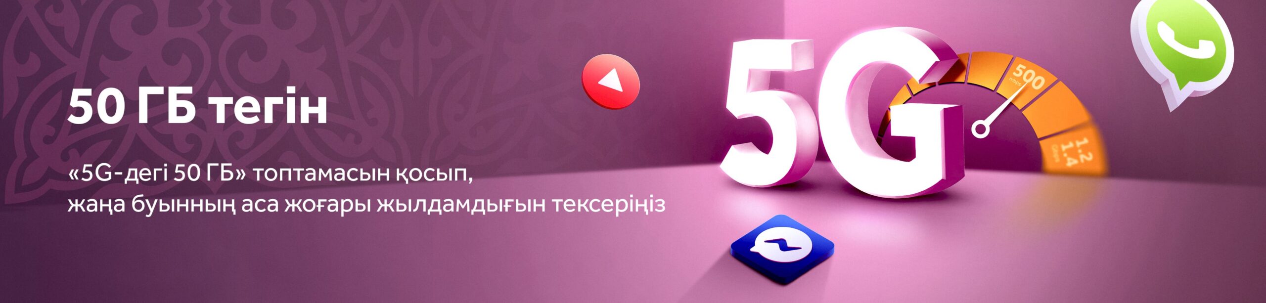 «5G-де 50ГБ» науқандық топтамасы 5G желісінде тегін 50 ГБ алуға мүмкіндік береді.
